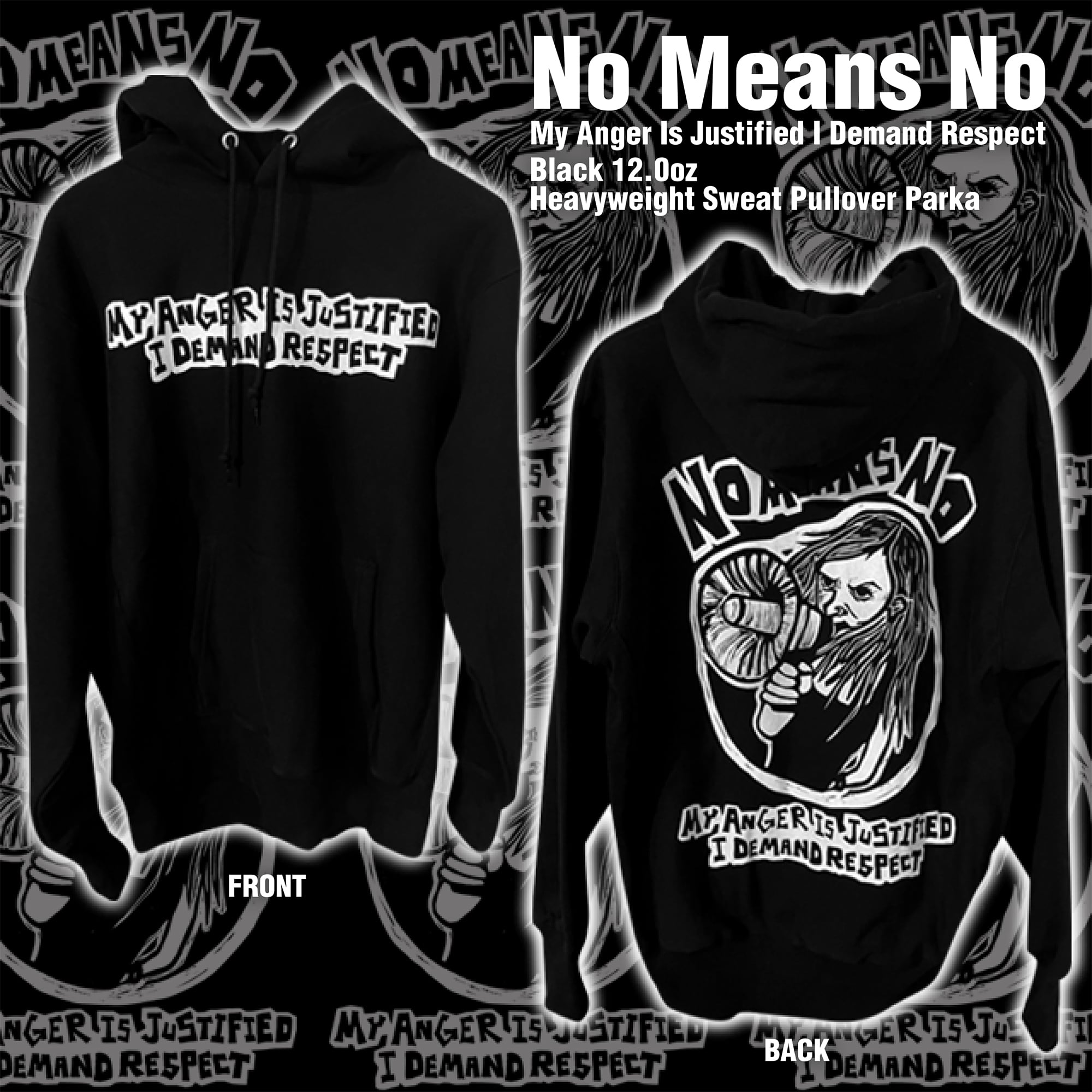 No Means No / My Anger Is Justified I Demand Respect ♯12.0 oz heavyweight hoodie