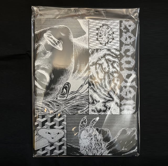 インクを使った繊細な線や点で、白黒の平面作品を制作。