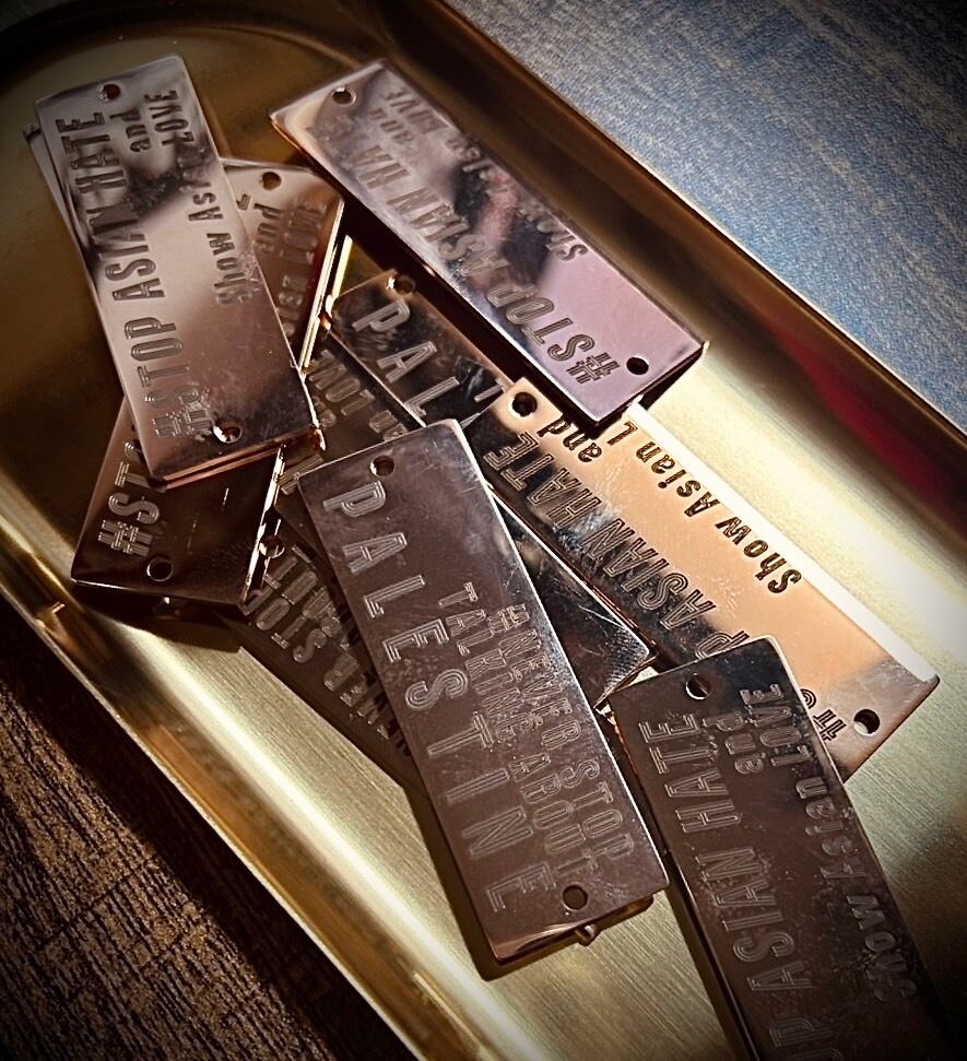 『#NeverStopTalkingAboutPALESTINE』/『# StopAsianHate and Show Asian Love』プレート / イコール : ローズゴールド